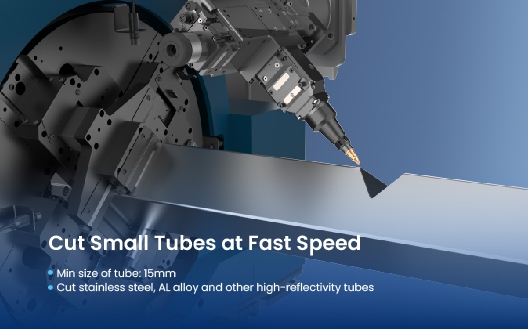 Its laser generator adopts laser energy precise-control technology to make cutting incision smooth and avoid edge & angle burning, overburning, burr or thermal deformation while dealing with small tubes.