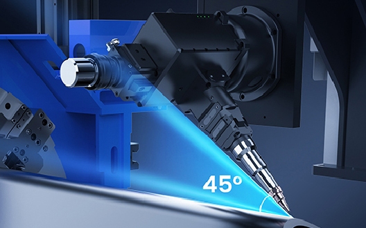 Its autofocus laser cutting head and two pneumatic chucks special for beveling can cut round, square and rectangular tubes, angle and channel steels into ±45° bevels, getting ready for later welding. Such one-step operations will certainly raise cutting precision and speed. Notes: 6012GPLUS comes standard with this function, but it is optional for other models.